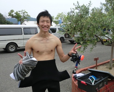 ・・・おや?ウェットスーツを着ている人がいますよ?